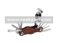 DEscriptION:Multi Tool 16 Function, Grain Aluminum Housing Tire Lever, Bottle Opener, Spoke Wrench 14/15g, Chain Tool, 2/2.5/3/4/5/6/8mm Hex Key, Torx T25, +/- Screwdriver, 10mm Wrench.